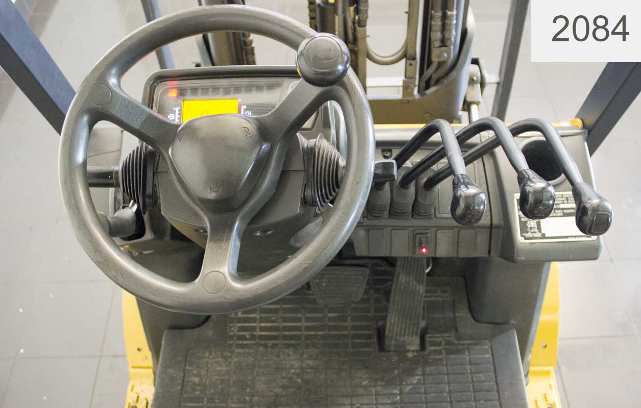 Газ-Бензиновый автопогрузчик Caterpillar Б/У с интентарным номером 2084 2012 года выпуска. Состояние - Хорошее. Имеет грузоподъемность 1750 кг. Гарантия: 3 мес или 500 м/час.