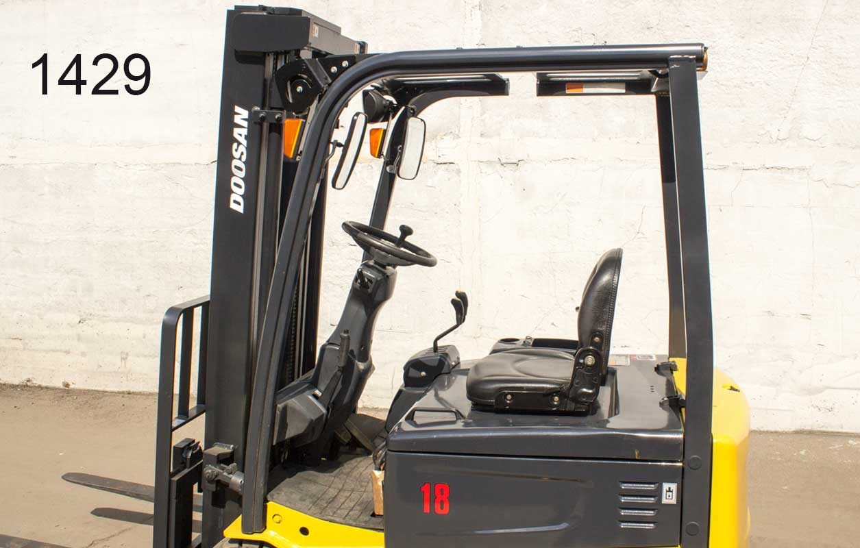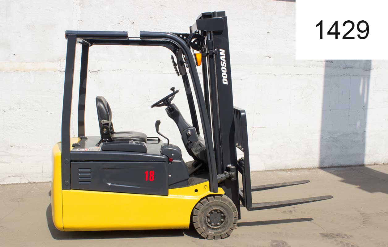 Электрический погрузчик Doosan Б/У с интентарным номером 1429 2005 года выпуска. Состояние - Отличное. Имеет грузоподъемность 1750 кг. Гарантия: 6 мес или 800 м/час.